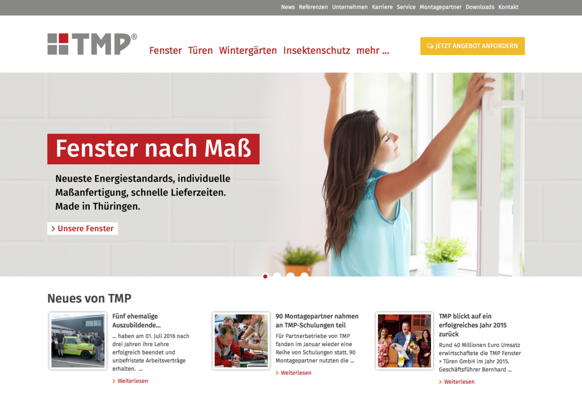 Gyvename skaitmeninio amžiaus laikotarpyje, todėl neatsilikdama nuo savo partnerių ir prisitaikydama prie vis aukštesnių klientų poreikių, TMP Langai + Durys startuoja su nauju interneto puslapiu. Nuo šiol viską apie "Thuringia Megaplast - Ukmergė" teikiamas paslaugas gaminius ir naujienas galite rasti adresu: www.tmp-online.lt Naujasis puslapis ne tik vizualiai, bet ir techniškai atnaujintas, čia pateikiamos naudingos informacijos ras ir statybininkai ir projektuotojai.